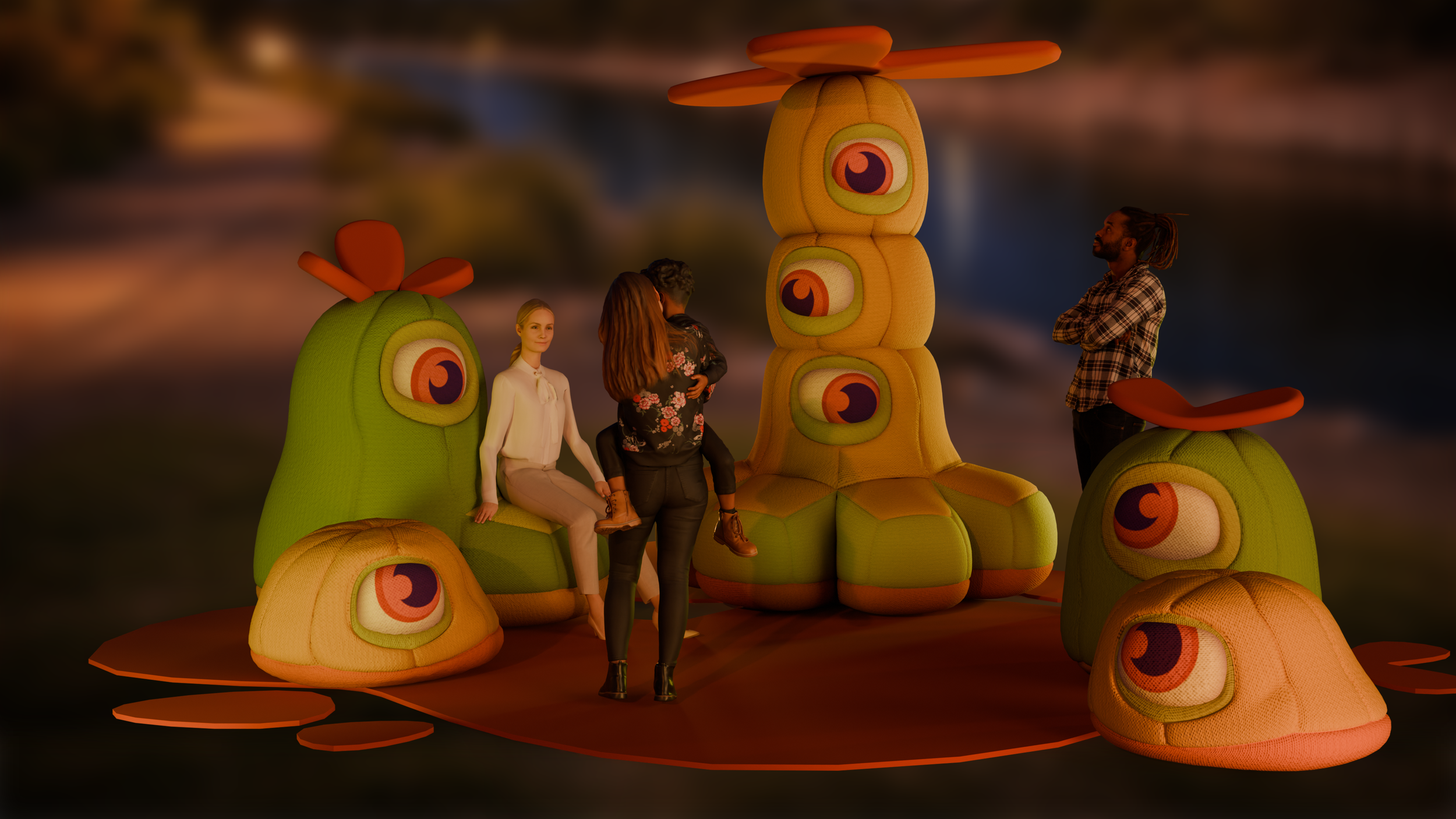 Each soft sculpture is made of outdoor-friendly materials & stuffed with recycled textile waste.